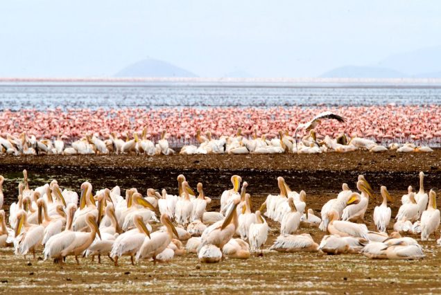 Enter the park and begin your guided game drive through different ecosystems—groundwater forest, open savannah, and lakeshore. Spot elephants, giraffes, buffalo, hippos, and thousands of flamingos and water birds along the lake.